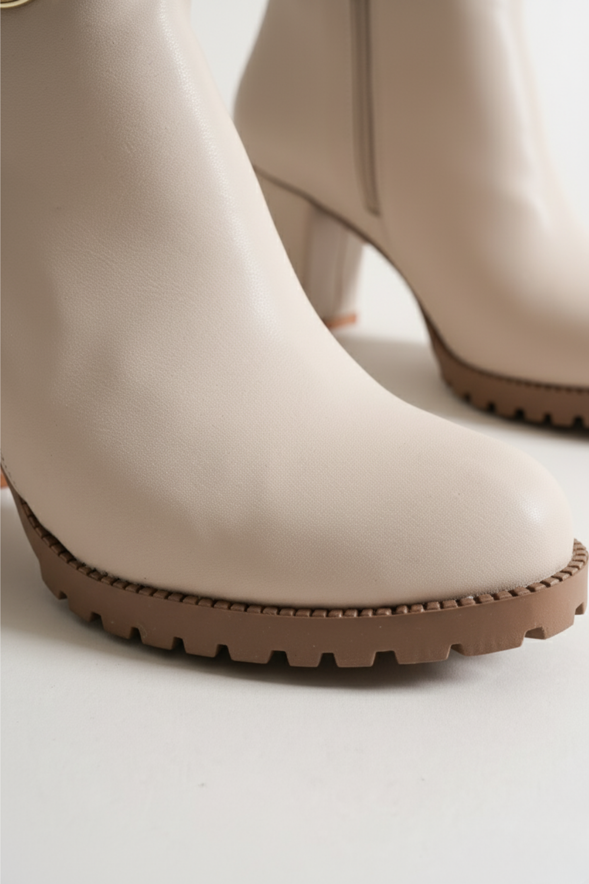 Brielfy Altın Tokalı Bej Topuklu Kadın Bot | Kışlık Şık Günlük Bot