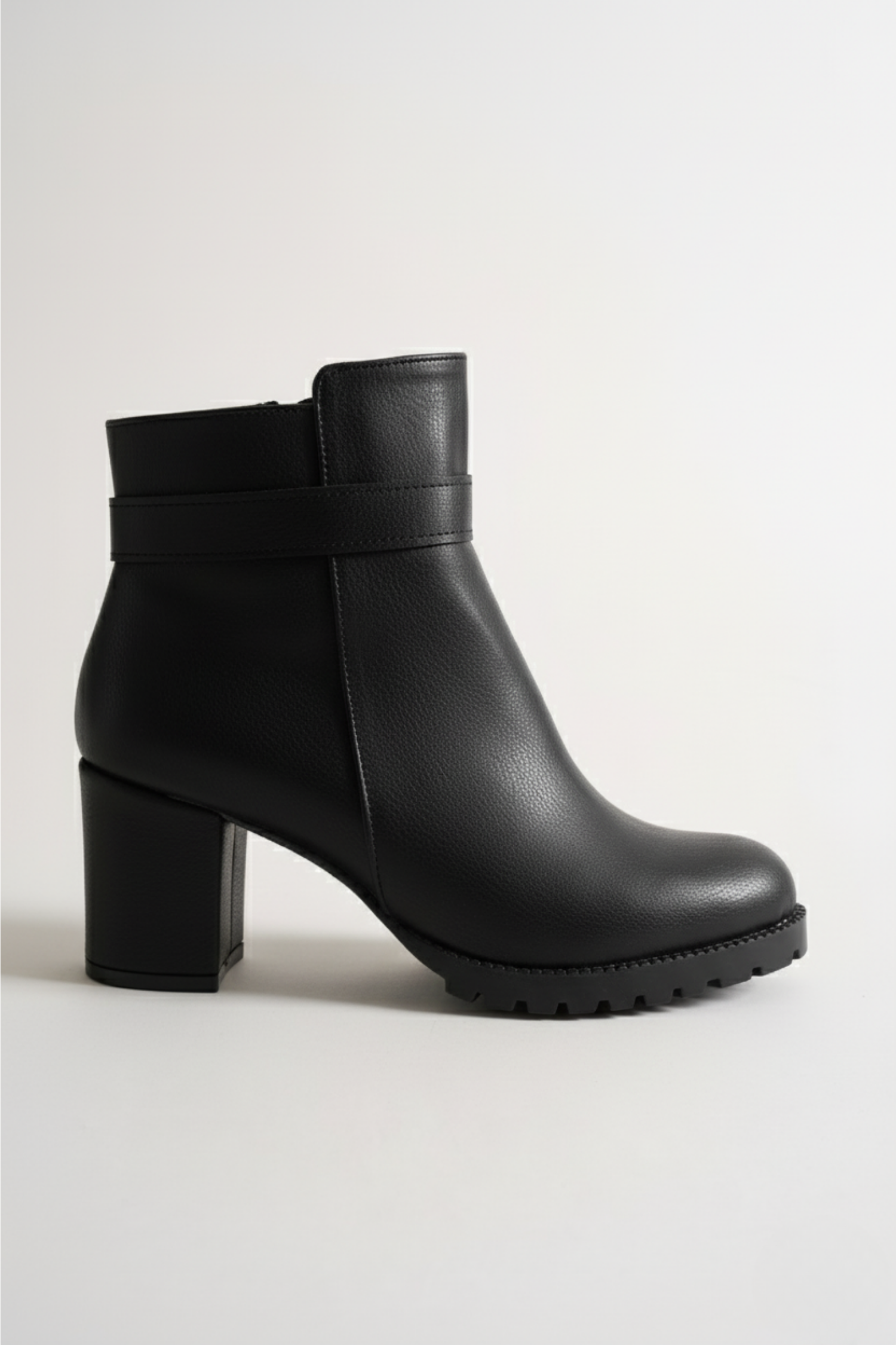 Siyahın asil enerjisiyle parlayan bu model, hem klasik hem modern kombinlerde kusursuz bir tamamlayıcı. 7 cm’lik kalın blok topuğu, uzun süreli kullanımda denge ve konfor sağlarken, kaymaz neolit tabanı her adımda güvenli bir tutuş sunar. Yandan fermuarlı yapısı kolay giyim avantajı yaratır.