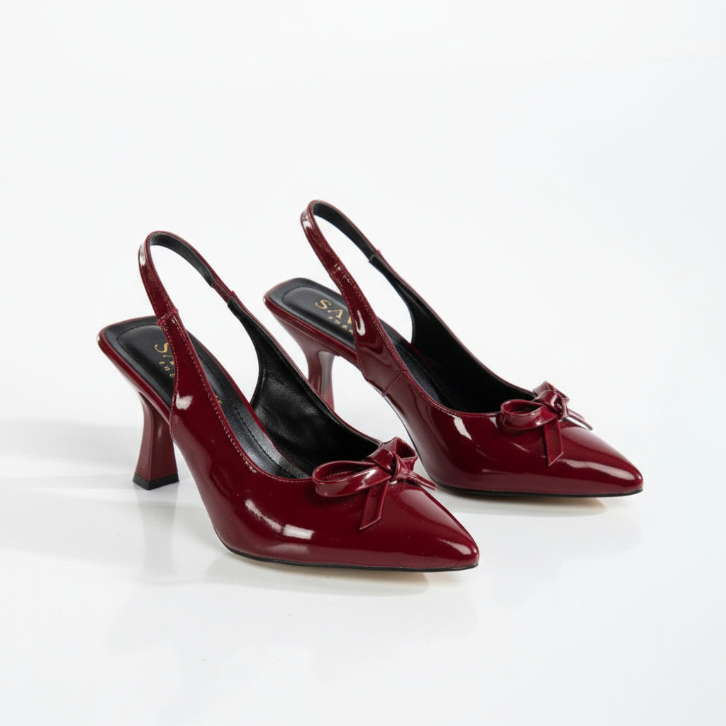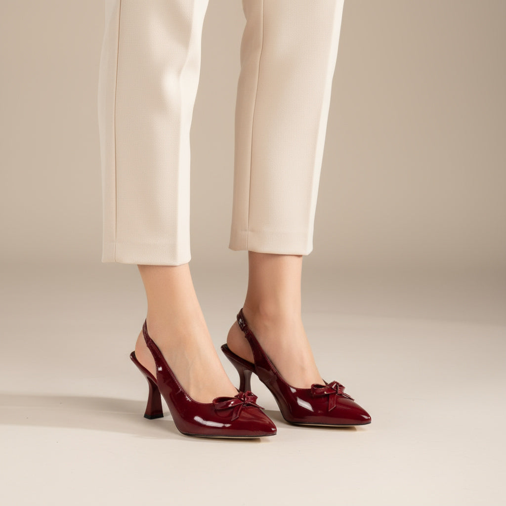 Bu bordo ince fiyonk slingback, modern şıklığın en seçkin halini taşır.