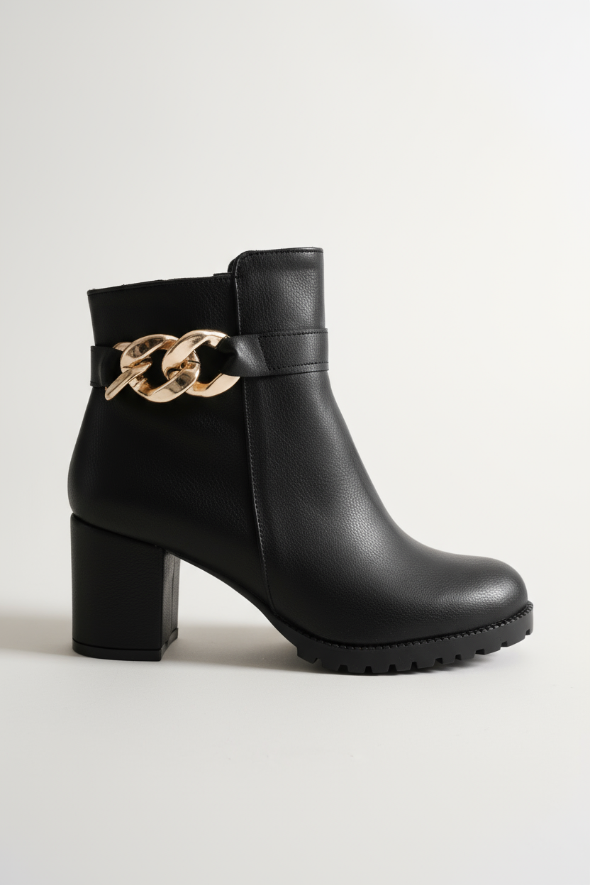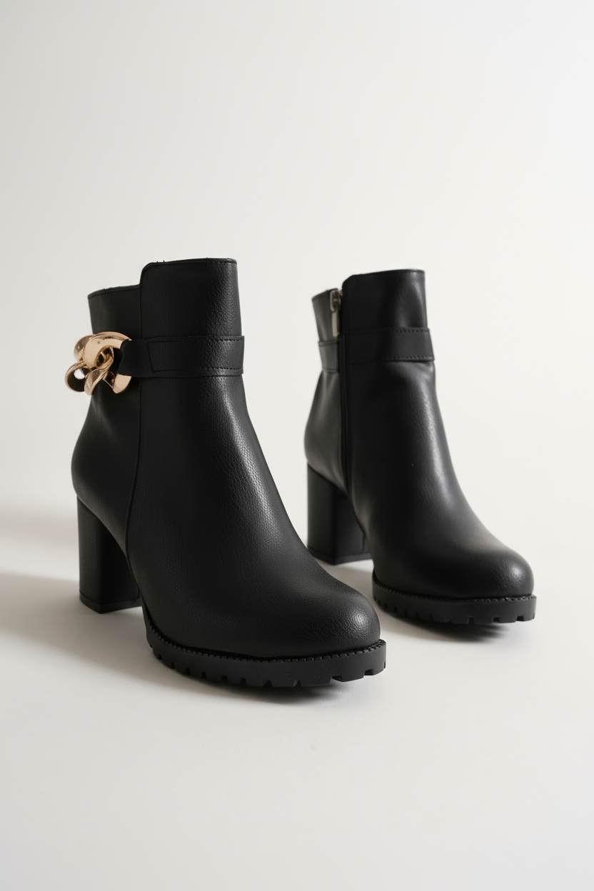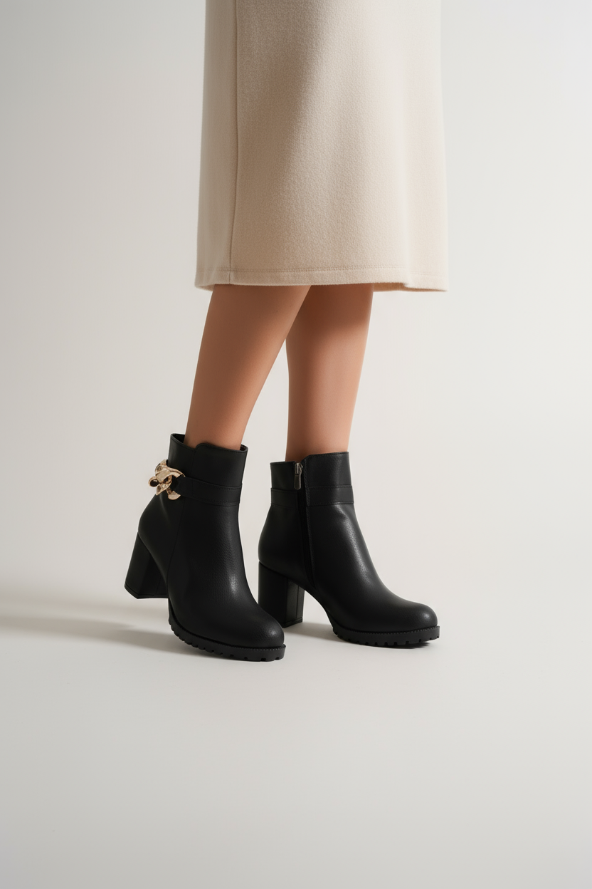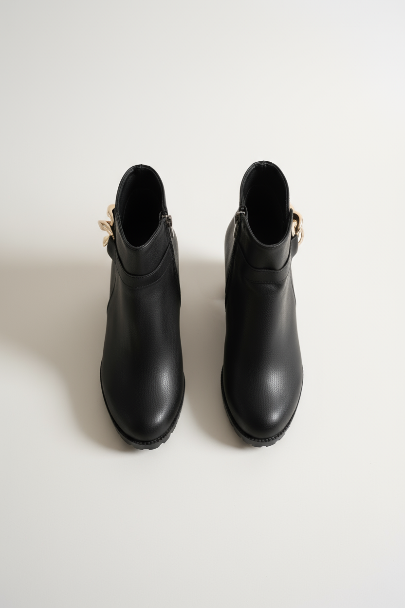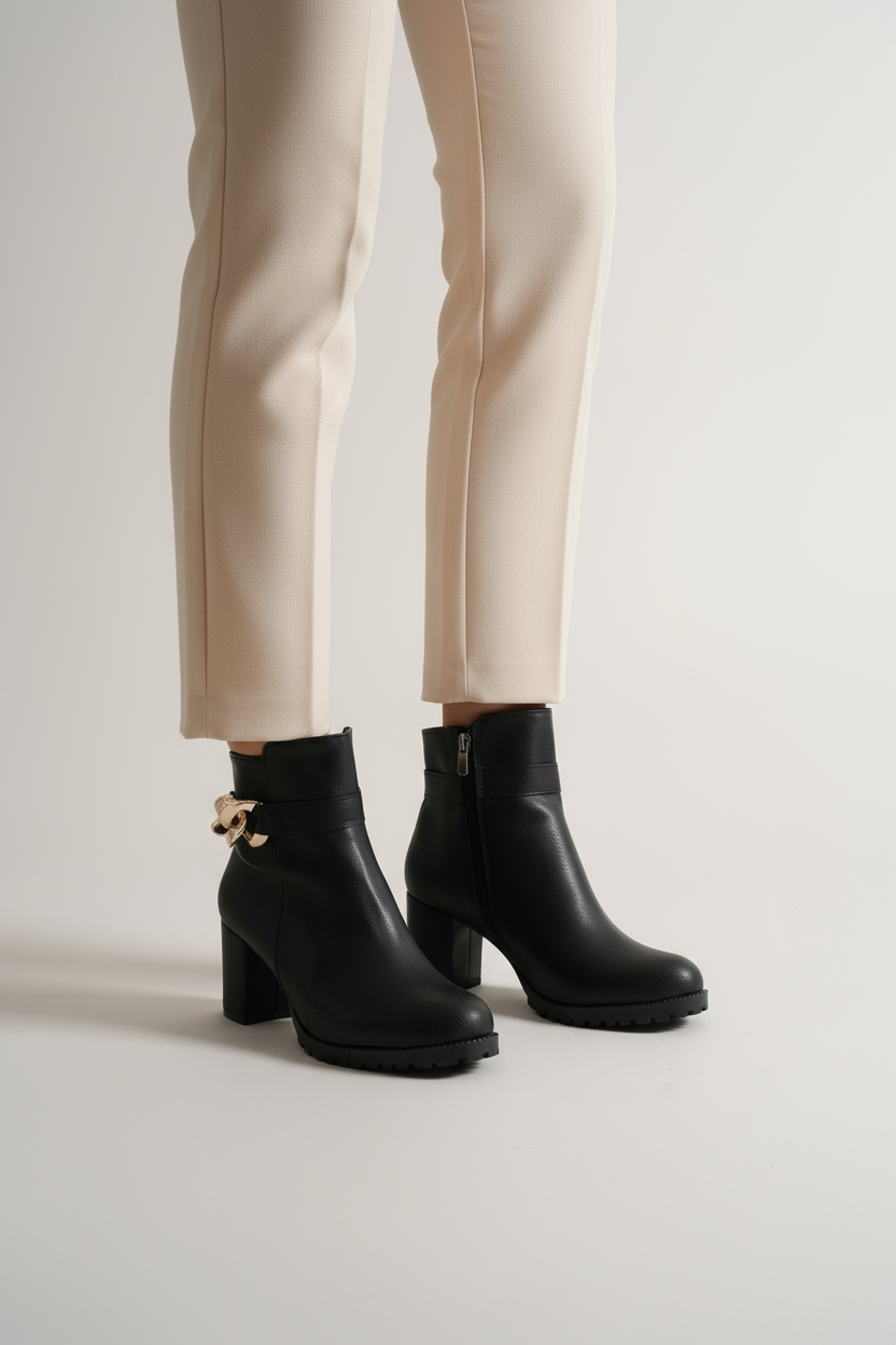 Bilek kısmında yer alan altın burma toka detayı, modelin minimalist çizgisine lüks bir dokunuş ekler. Bu özel detay, sade tasarımıyla birleştiğinde güçlü ama zarif bir kontrast oluşturur. Şehirde, ofiste ya da özel davetlerde — bu bot, her ortamda stilinizi tamamlayan imza parçası olur.