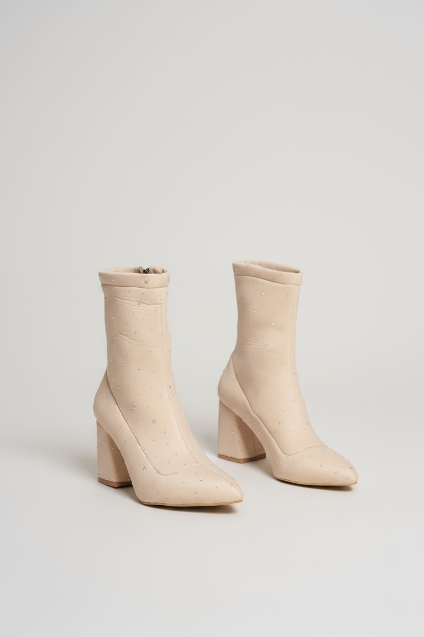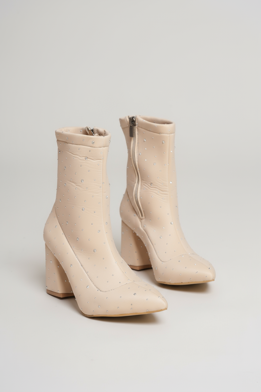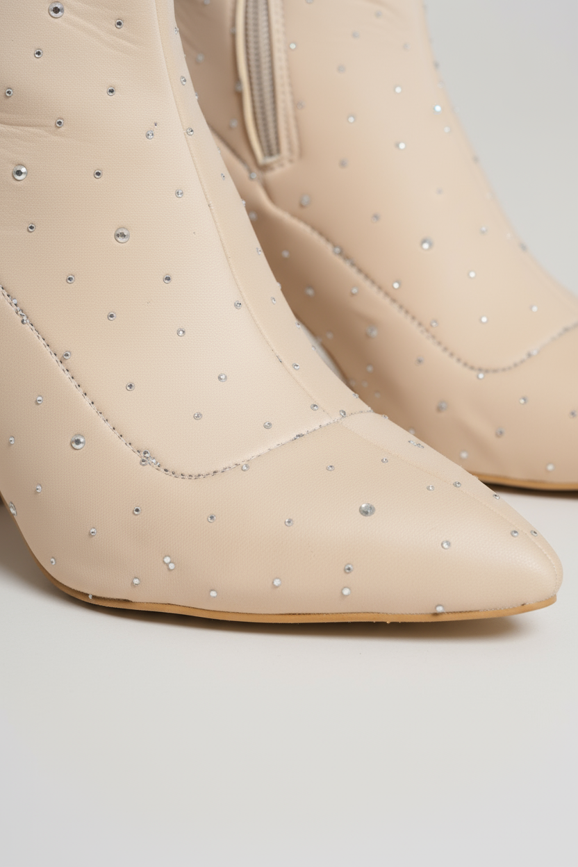 Brielfy Lumière Taş Detaylı Streç Topuklu Bot Bej