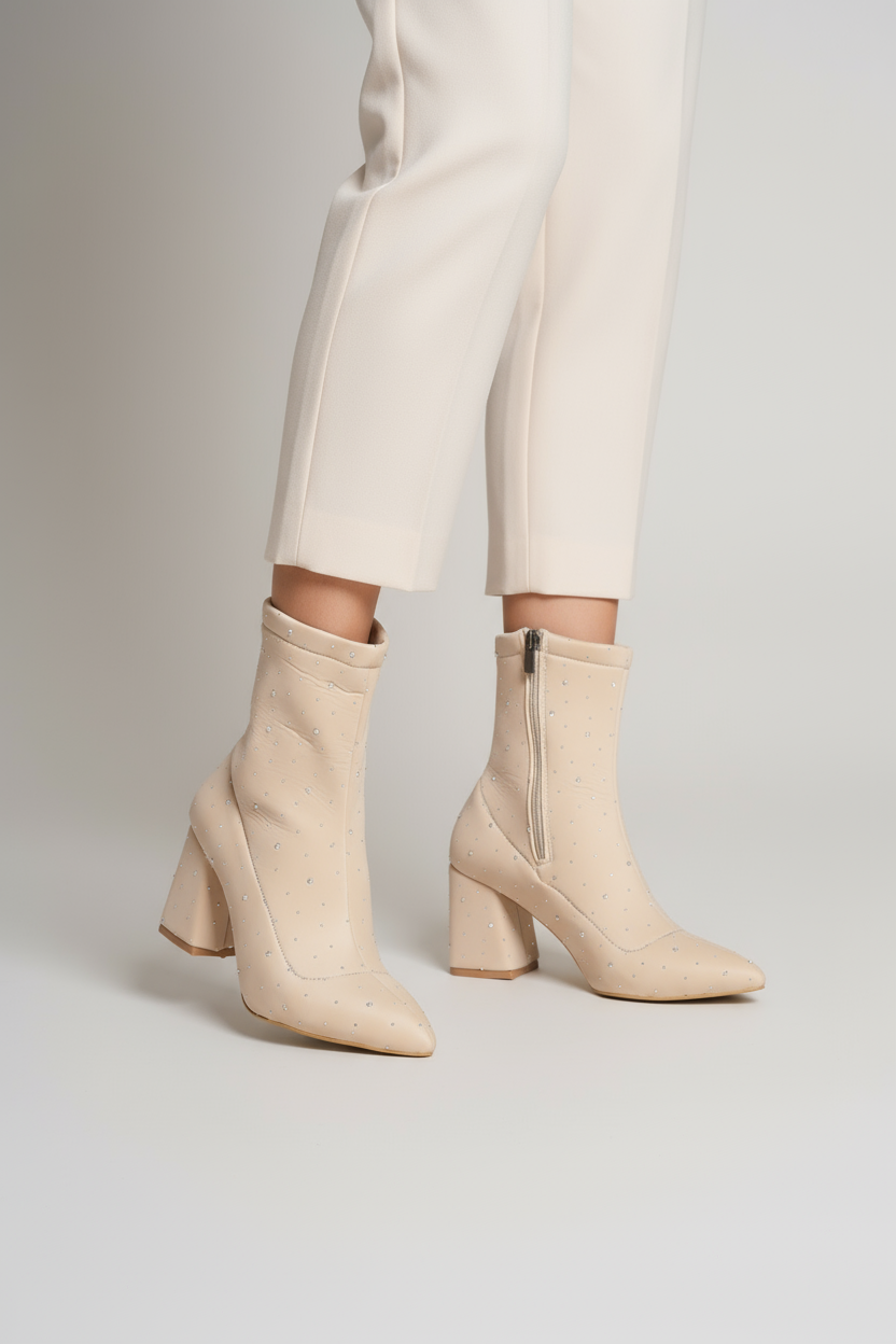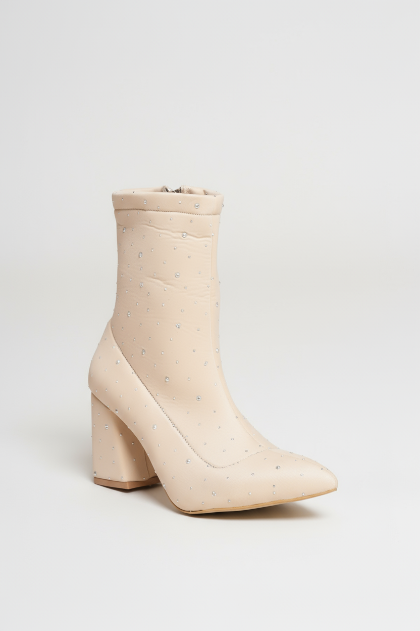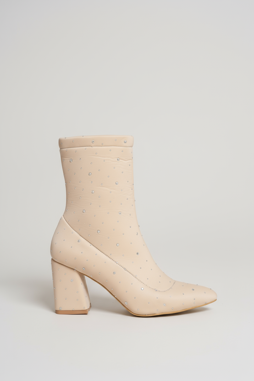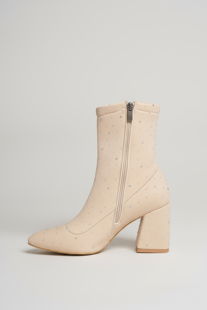 Brielfy Lumière Taş Detaylı Streç Topuklu Bot Bej