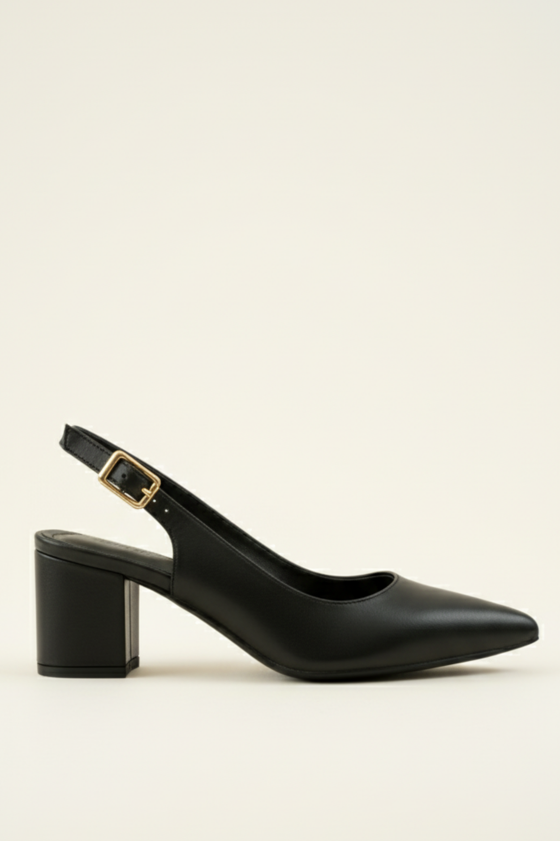 BRIELFY Noir – Siyah Cilt 5 cm Topuklu Tokalı Slingback Ayakkabı