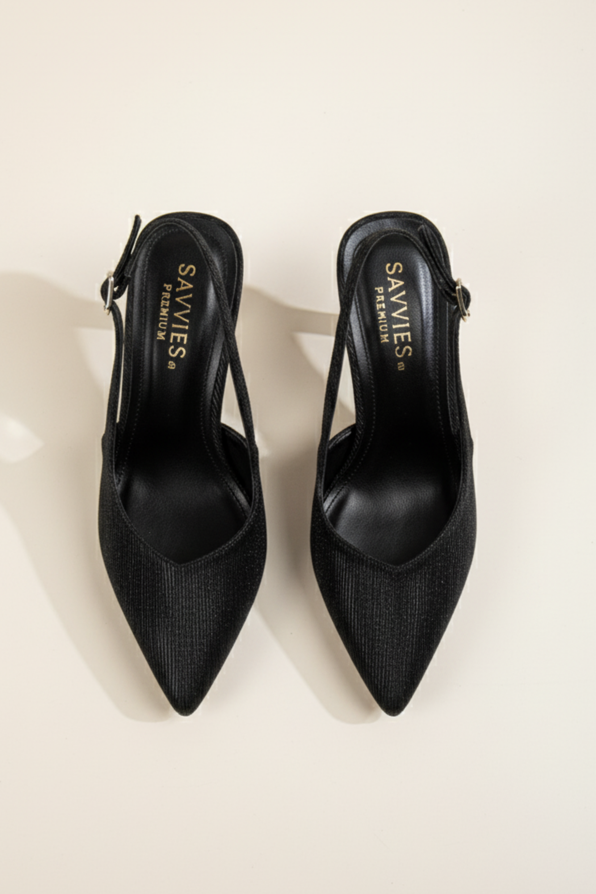 BRIELFY Siyah Simli Slingback, zarafetin en güçlü temsilcisi.