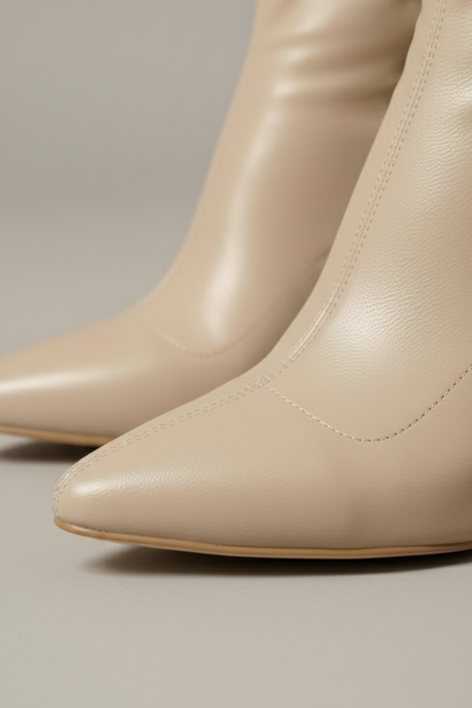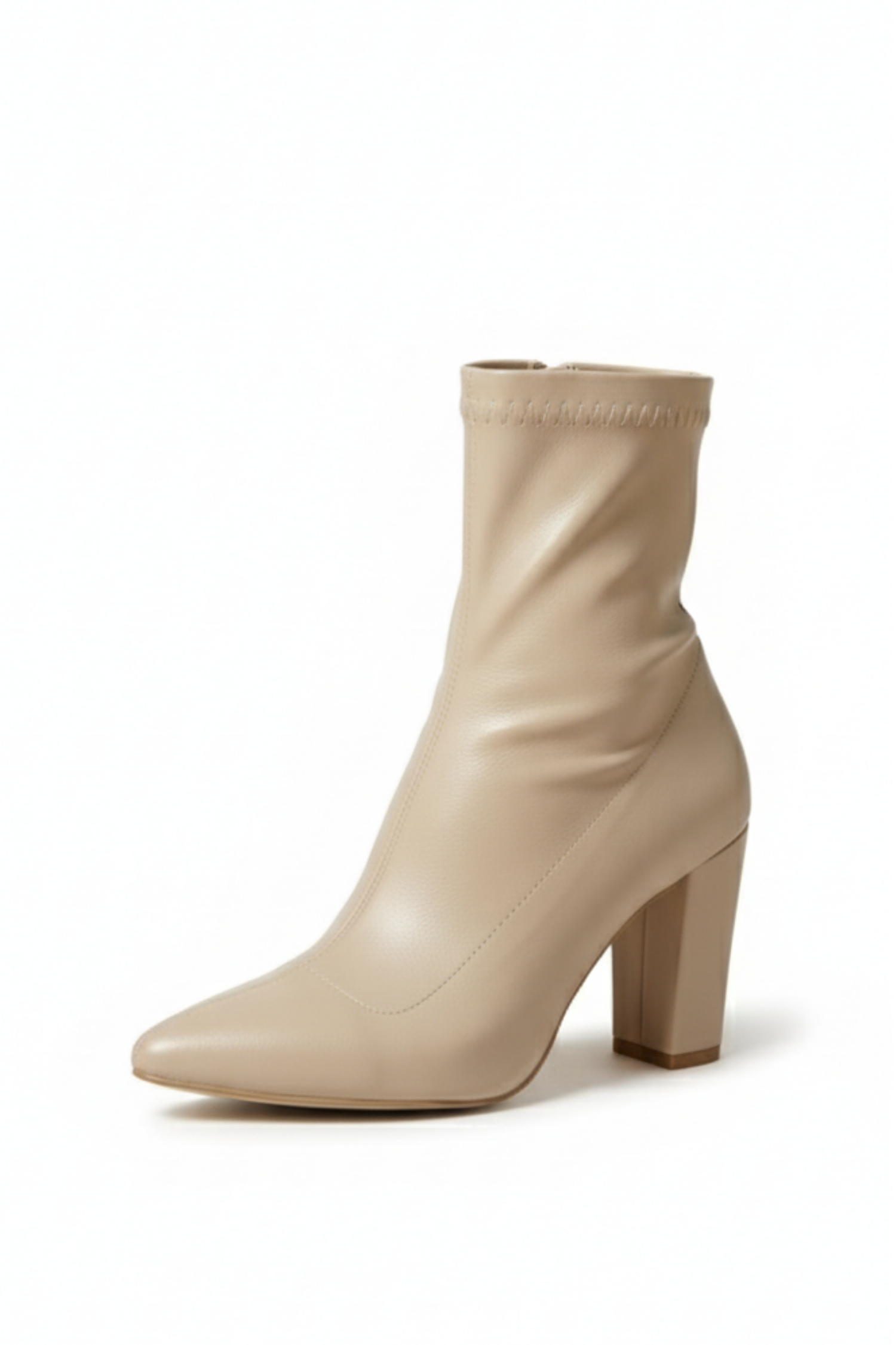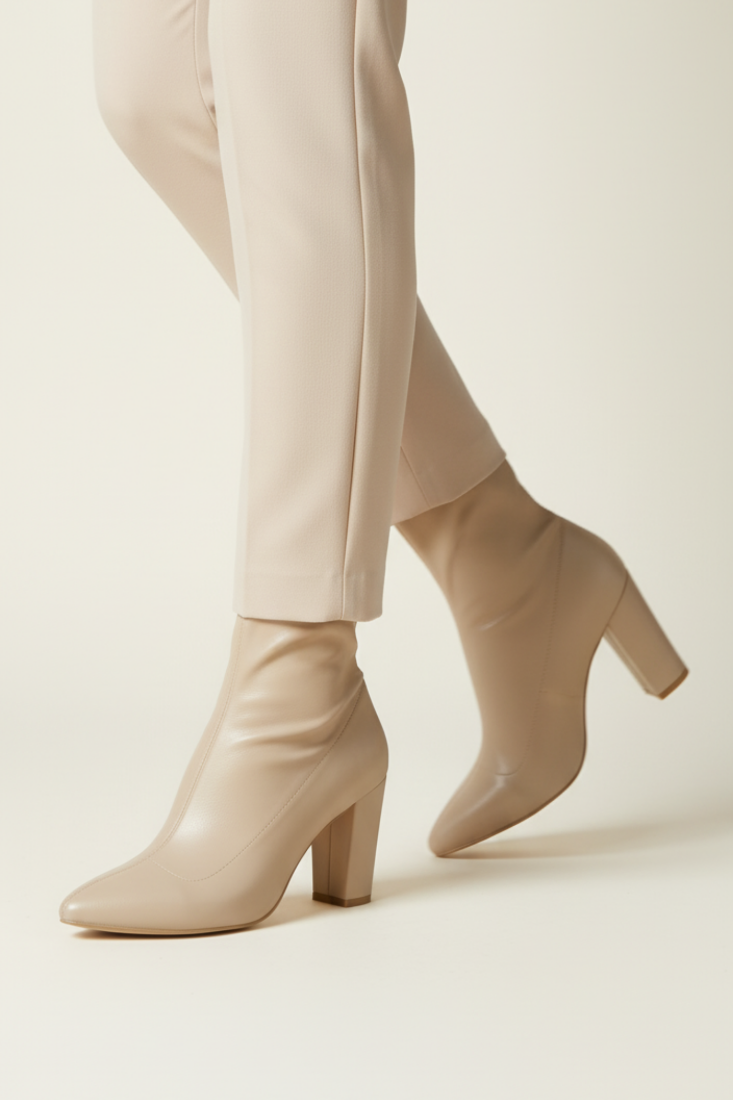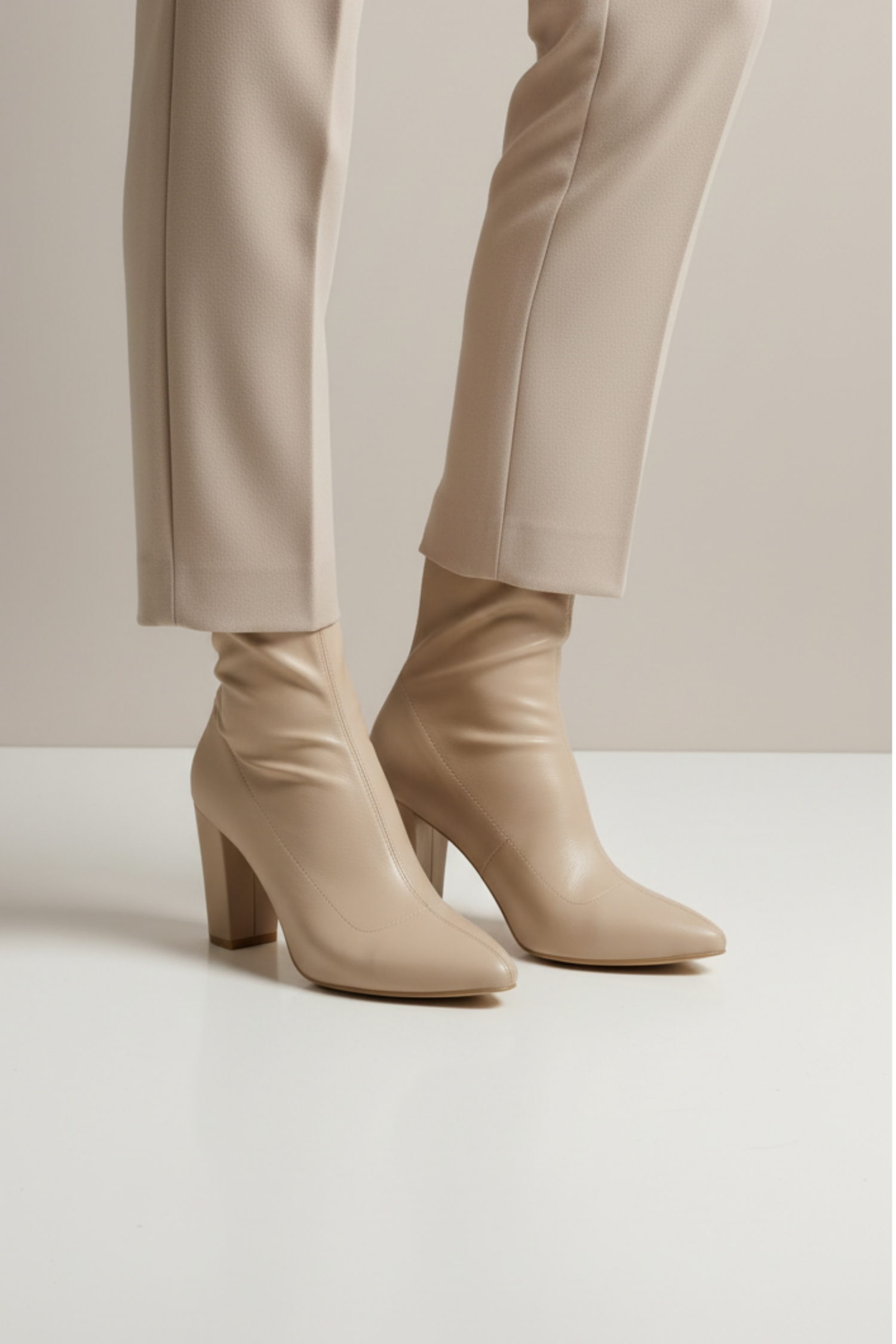 Brielfy Streç Bej Topuklu Kadın Bot | Minimal Form, Yumuşak Zarafet